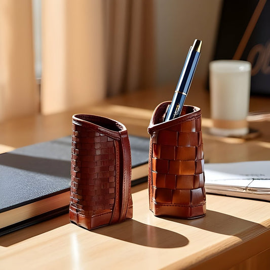 Chestnut Woven Leather Eyeglass Holder - 2 Styles