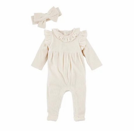 Monogrammed Baby Ruffle Knit Romper - Ivory