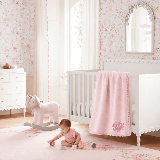 Monogrammed Light Pink Scallop Edge Knit Blanket