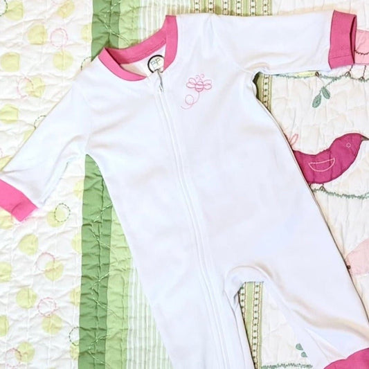 Monogrammed Scallop Knit Button Up Romper