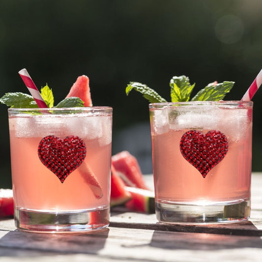 Red Heart Jeweled Double Old-Fashioned Glassware