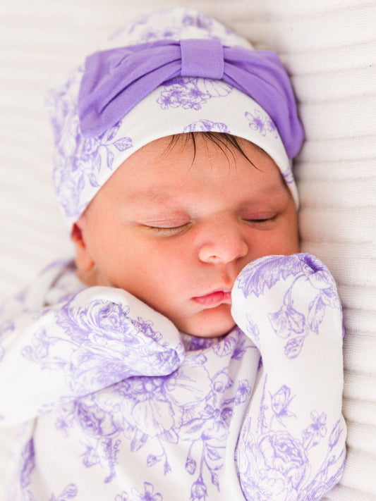 Newborn Purple Toile Bamboo Knotted Gown Set