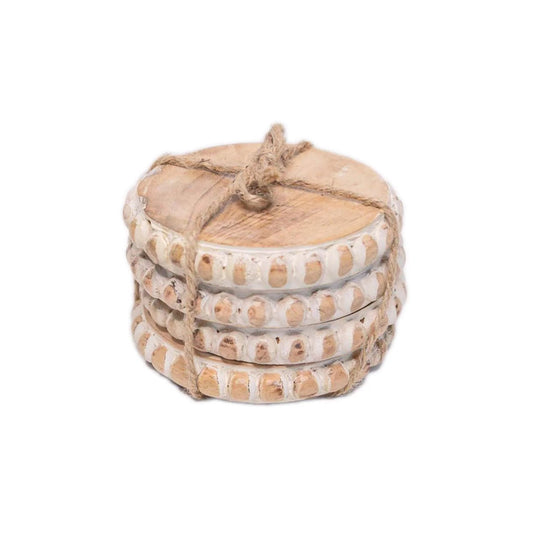Mary Square Beaded Wood Coasters - Set of 4