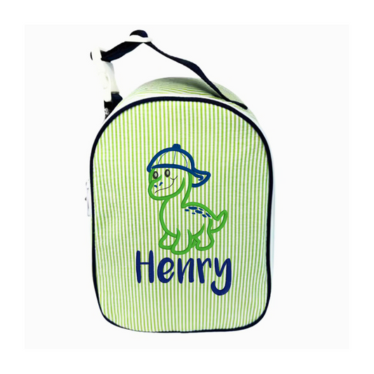 Monogrammed Grasshopper Seersucker Gumdrop Lunchbox