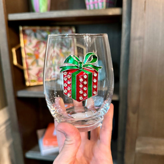 Wrapped Christmas Gift Jeweled Stemless Glassware