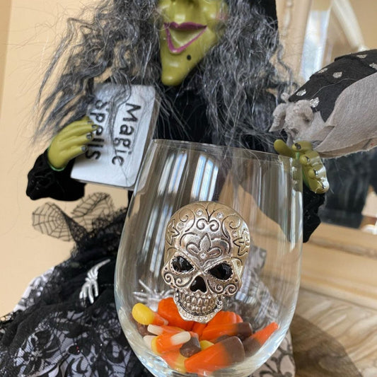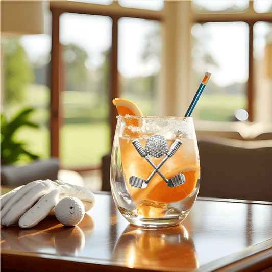 Silver Buck Stags Head Deer Jeweled Double Old-Fashioned Glassware