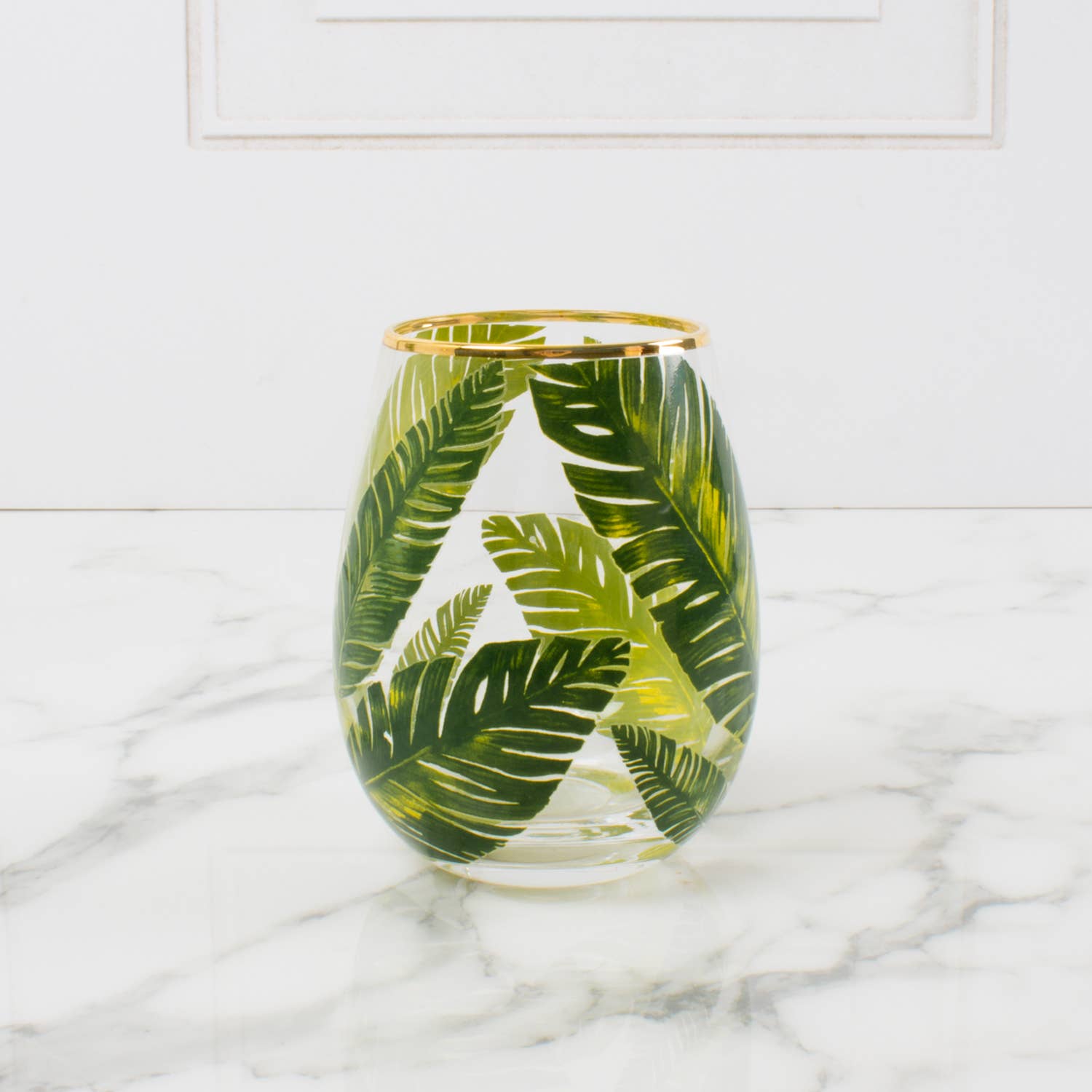 The glass is adorned with a vibrant green banana leaf decal, bringing a fresh, tropical-inspired touch to your table setting. A delicate gold rim adds a sophisticated, polished detail, elevating the overall design and making it equally suitable for casual gatherings or special occasions.