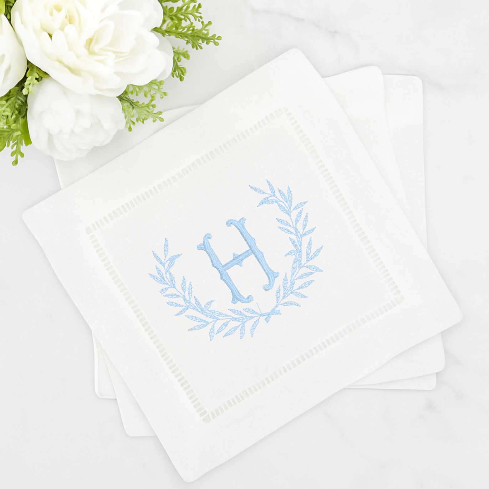 These white monogrammed hemstitch napkins add a simple elegance to any table. Perfect for gifts or special occasions. One set for them and two sets for you!