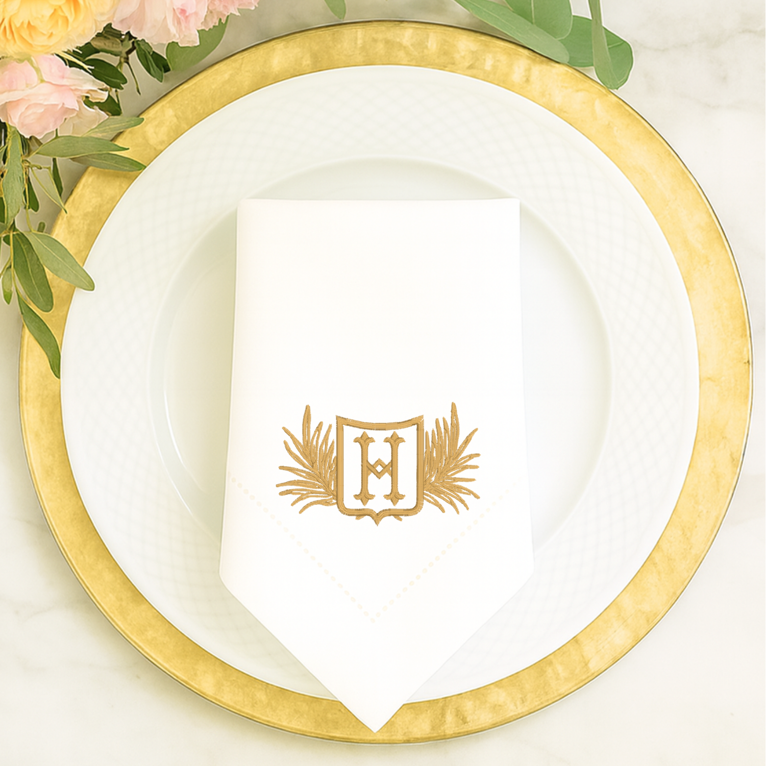 Feather Monogrammed Linen Dinner Napkin