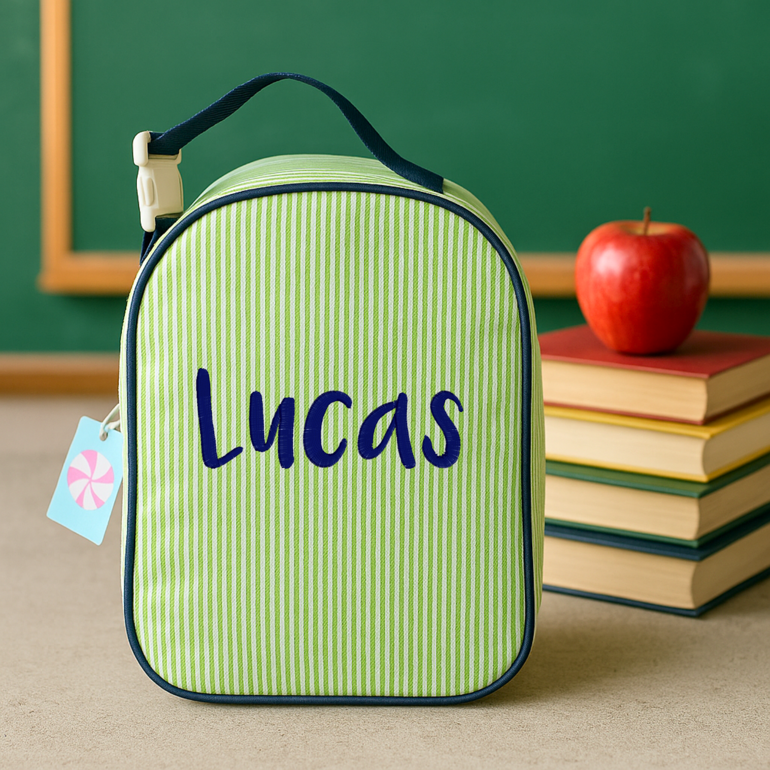 Monogrammed Grasshopper Seersucker Gumdrop Lunchbox