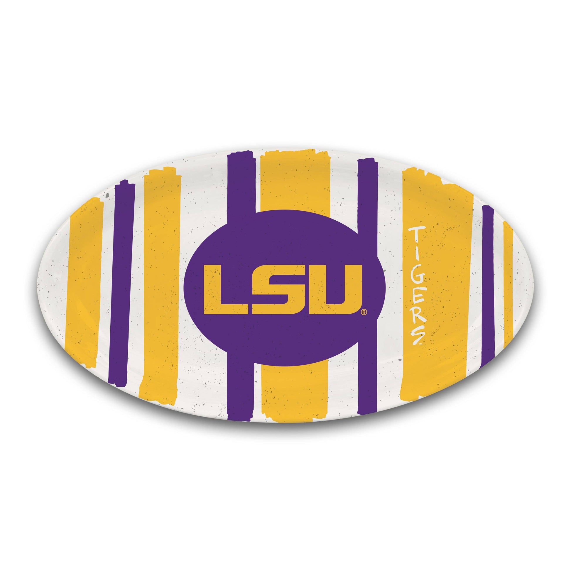 Serve up some LSU team spirit as you set out the game-day snacks on this oval kitchen platter. Guests are sure to flock to this tray at the next watch party, as it showcases excellent LSU graphics and provides ample room for all your favorite appetizers.