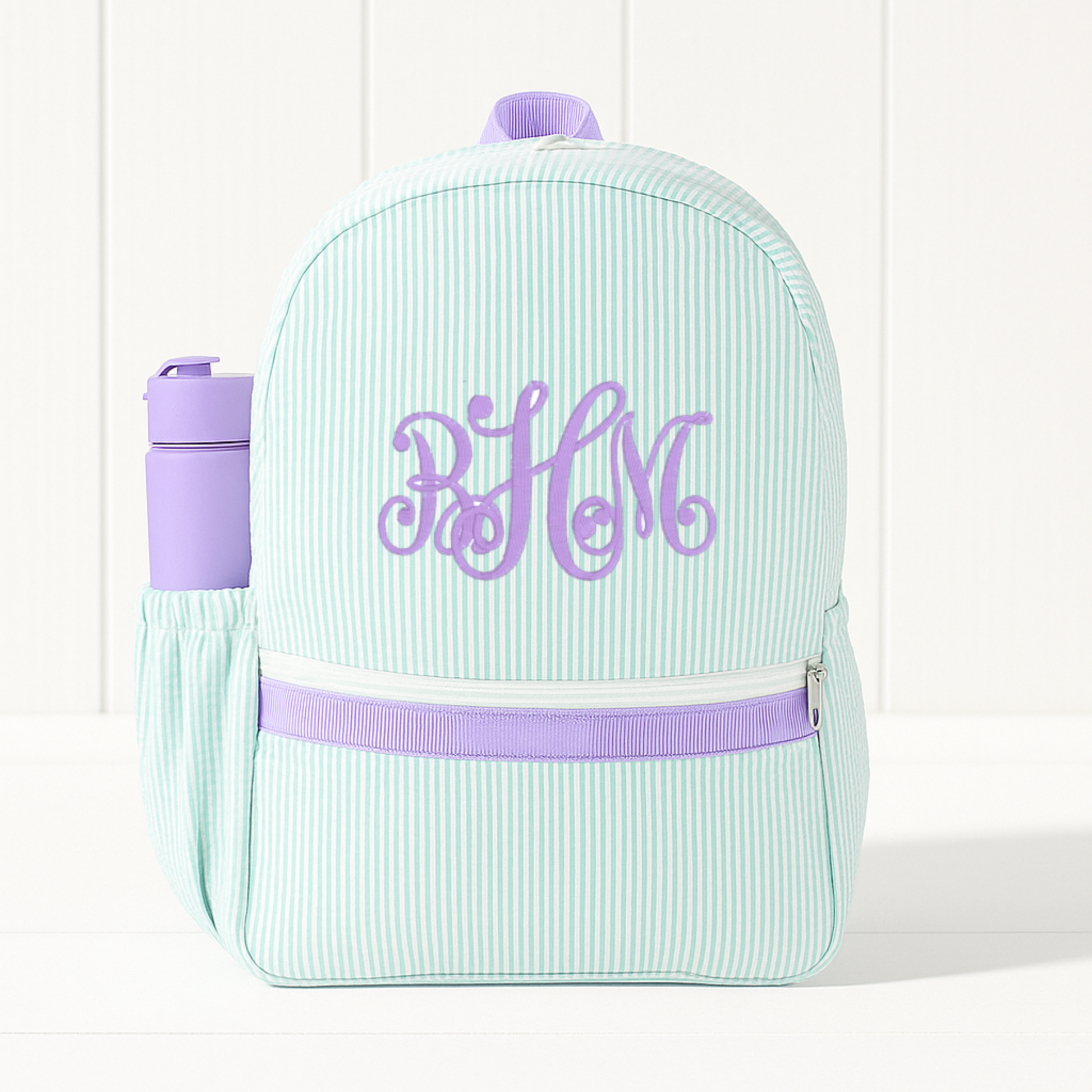 Monogrammed Mermaid Seersucker Medium Backpack