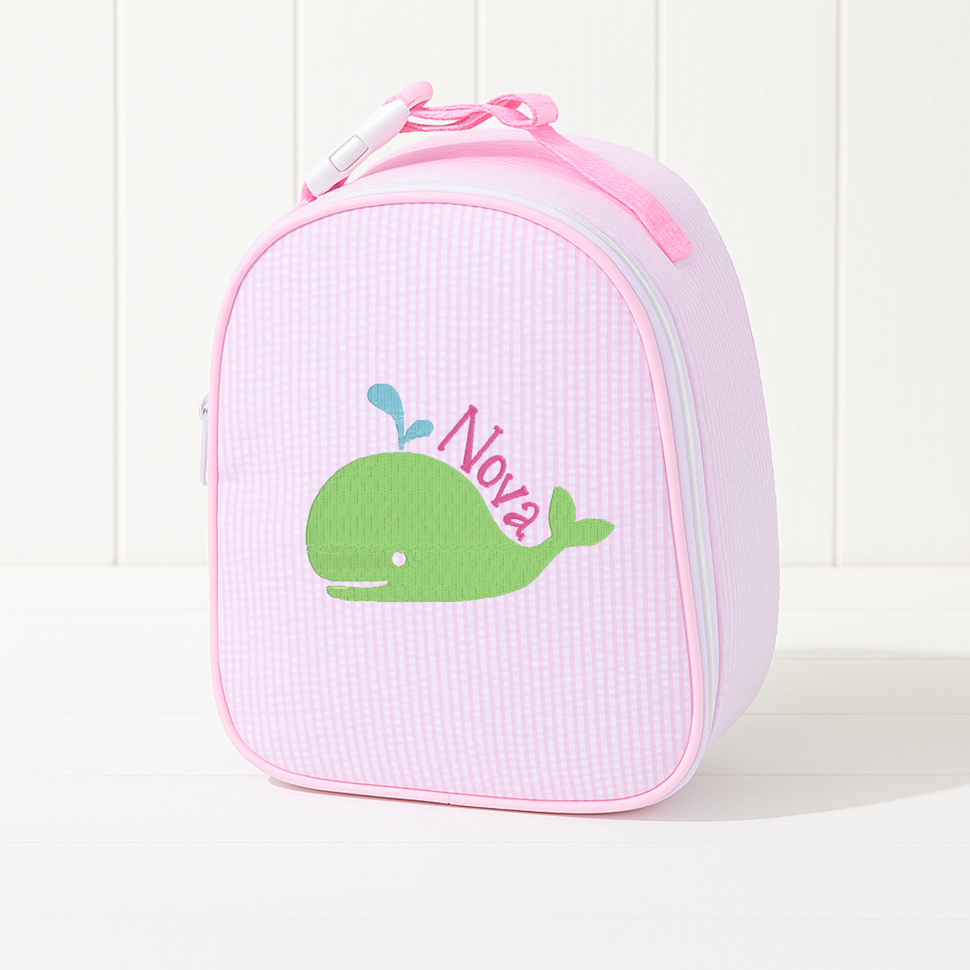 Monogrammed Pink Seersucker Gumdrop Lunchbox