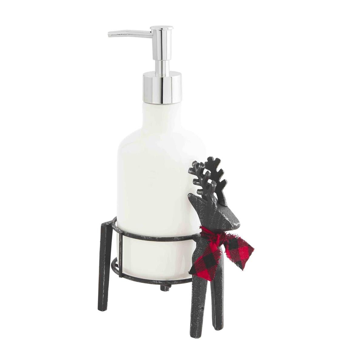 We wash you a merry Christmas with this Deer Soap Stand Set. The 2-piece set comes with a cast aluminum deer which features a red and black plaid pattern. The reindeer holds a ceramic soap pump. Fill this soap pump with your favorite Christmas-time scented soap.