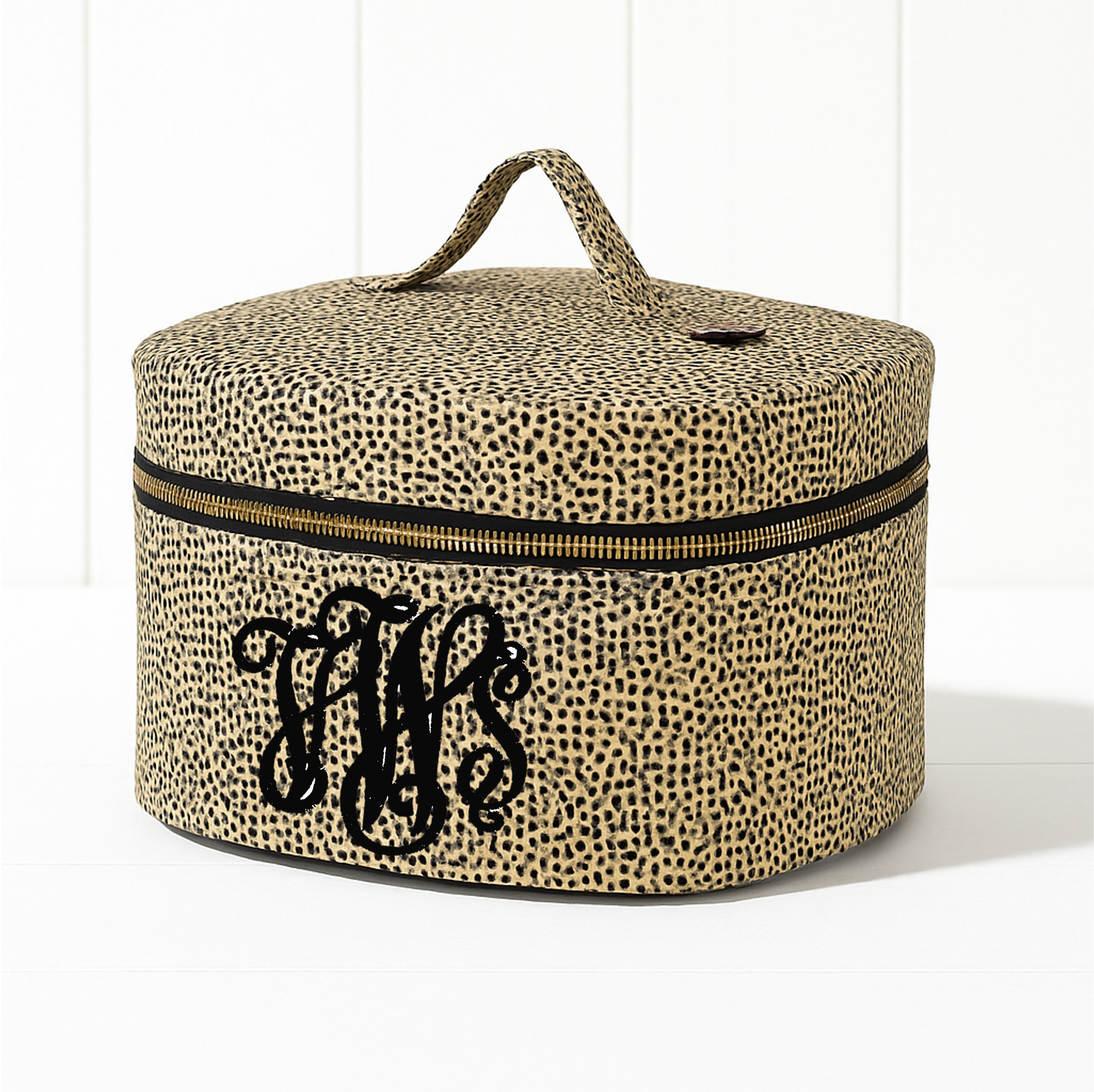 Cute cosmetic case, lined for easy cleaning, zips almost completely open for easy embroidery or applique! Perfect for brides and bridesmaids for the big day.