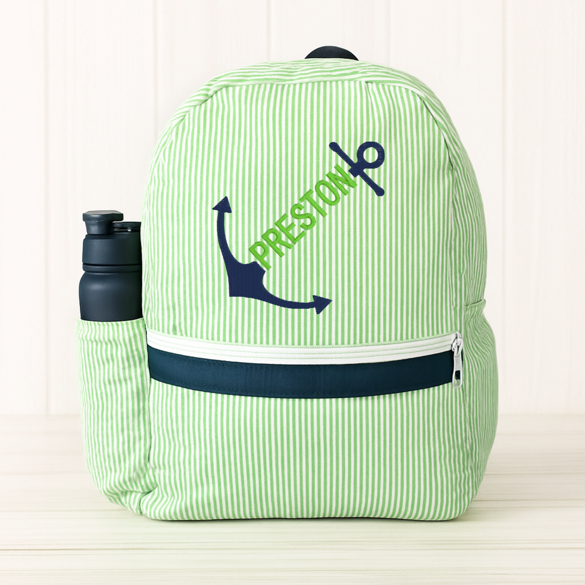 Monogrammed Grasshopper Seersucker Medium Backpack