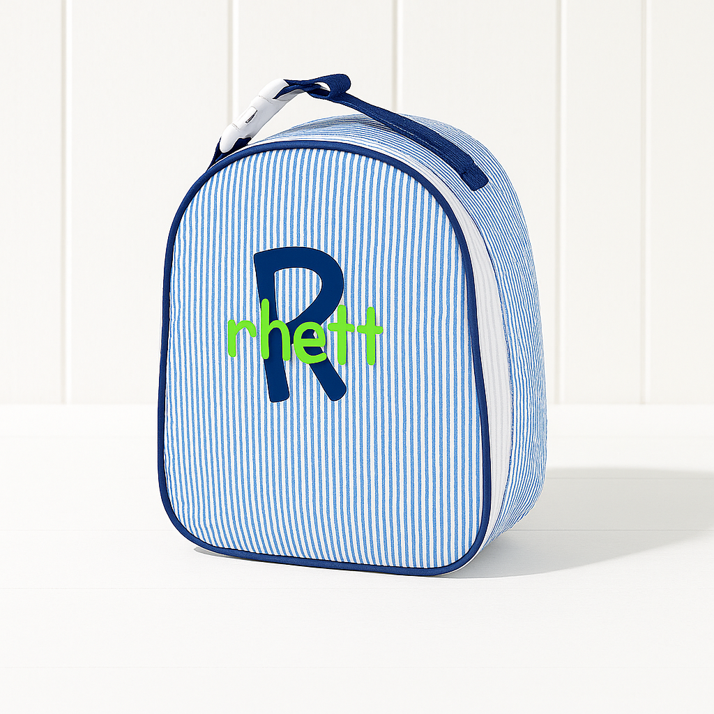 Monogrammed Navy Seersucker Gumdrop Lunchbox