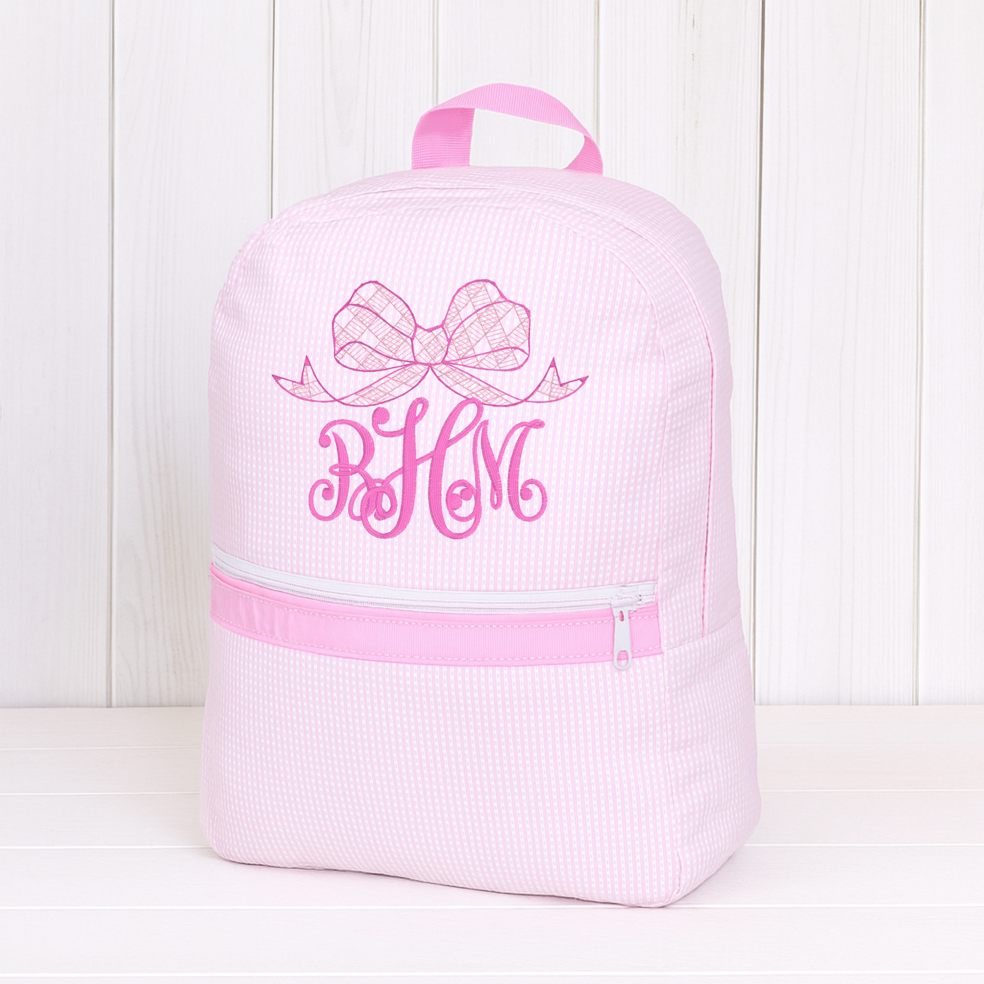 Monogrammed Pink Stripe Wipeable Small Backpack
