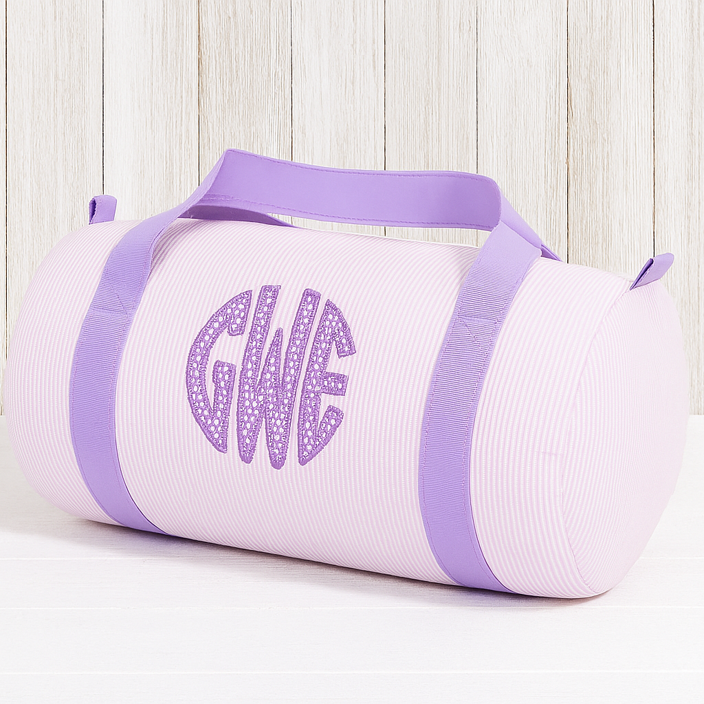 Princess Seersucker Dufflel for your littlest loves. These small duffels look perfect with a monogram and are a perfect complement to other pink & purple travel items.