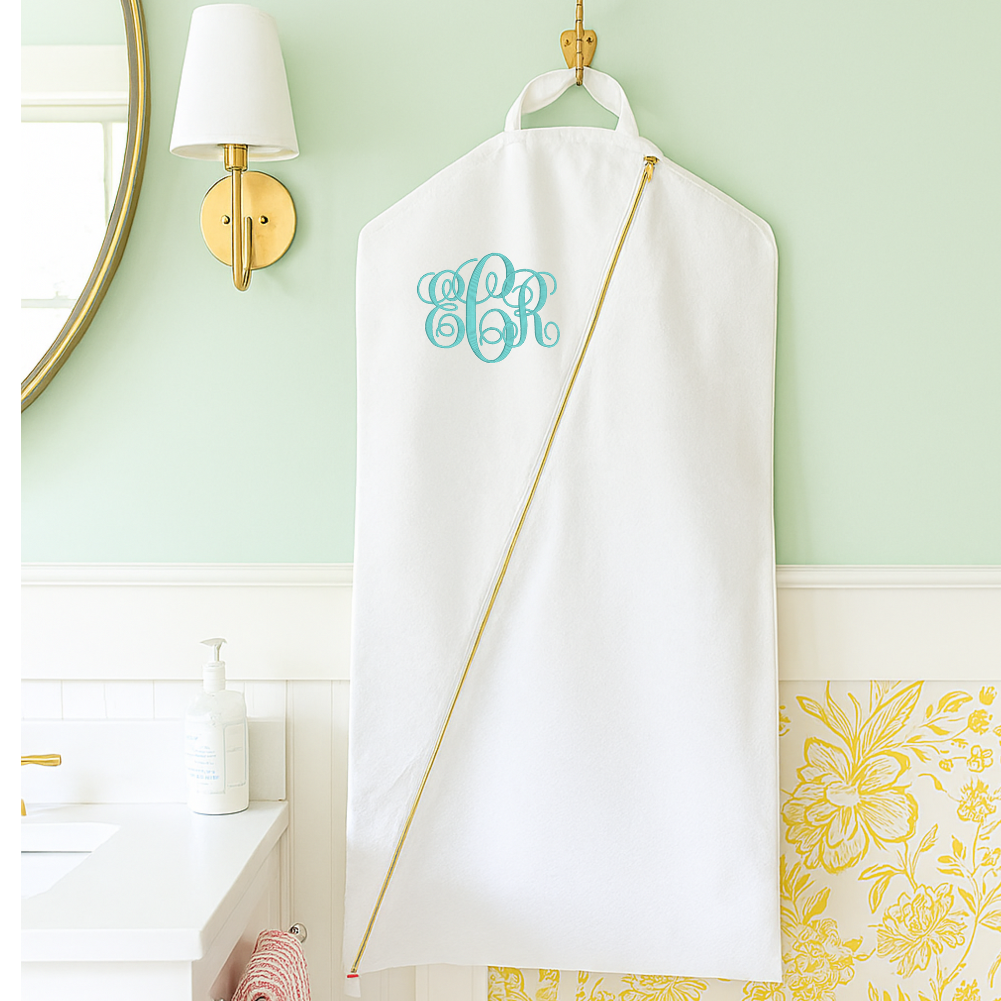 Plaid Seersucker hanging garment bag perfect for any age, and great to complete the matching travel gift set. Lined on the inside, seersucker on the outside. Holds just about anything except a Fiesta dress train.