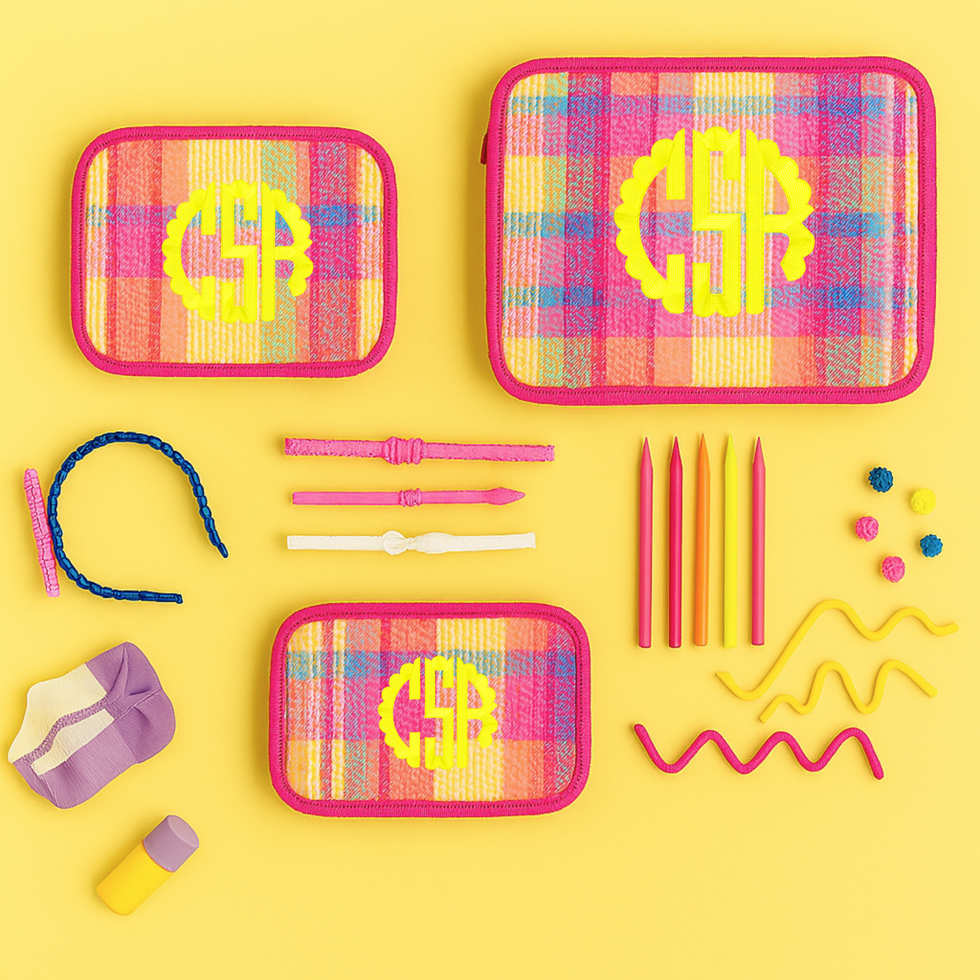 Monogrammed Popsicle Plaid Seersucker Stacking Set