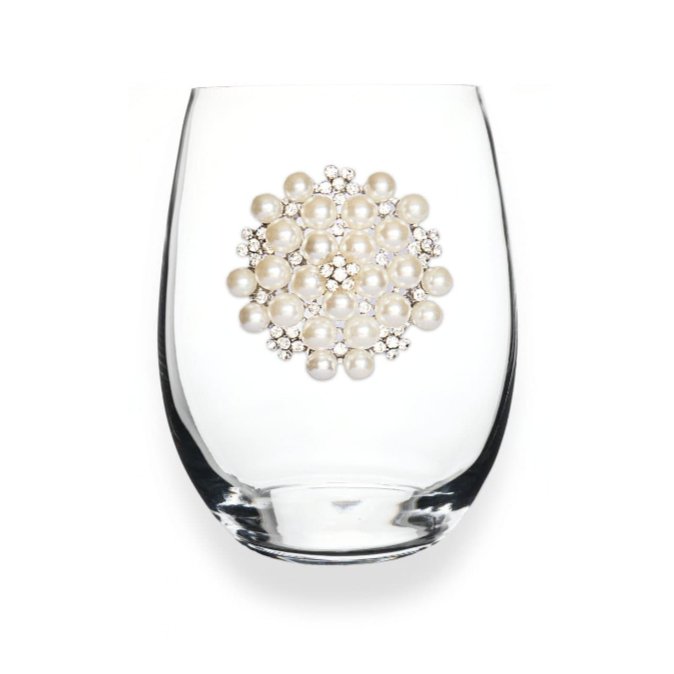 Round Diamond and Pearl Jeweled Stemless Glassware
