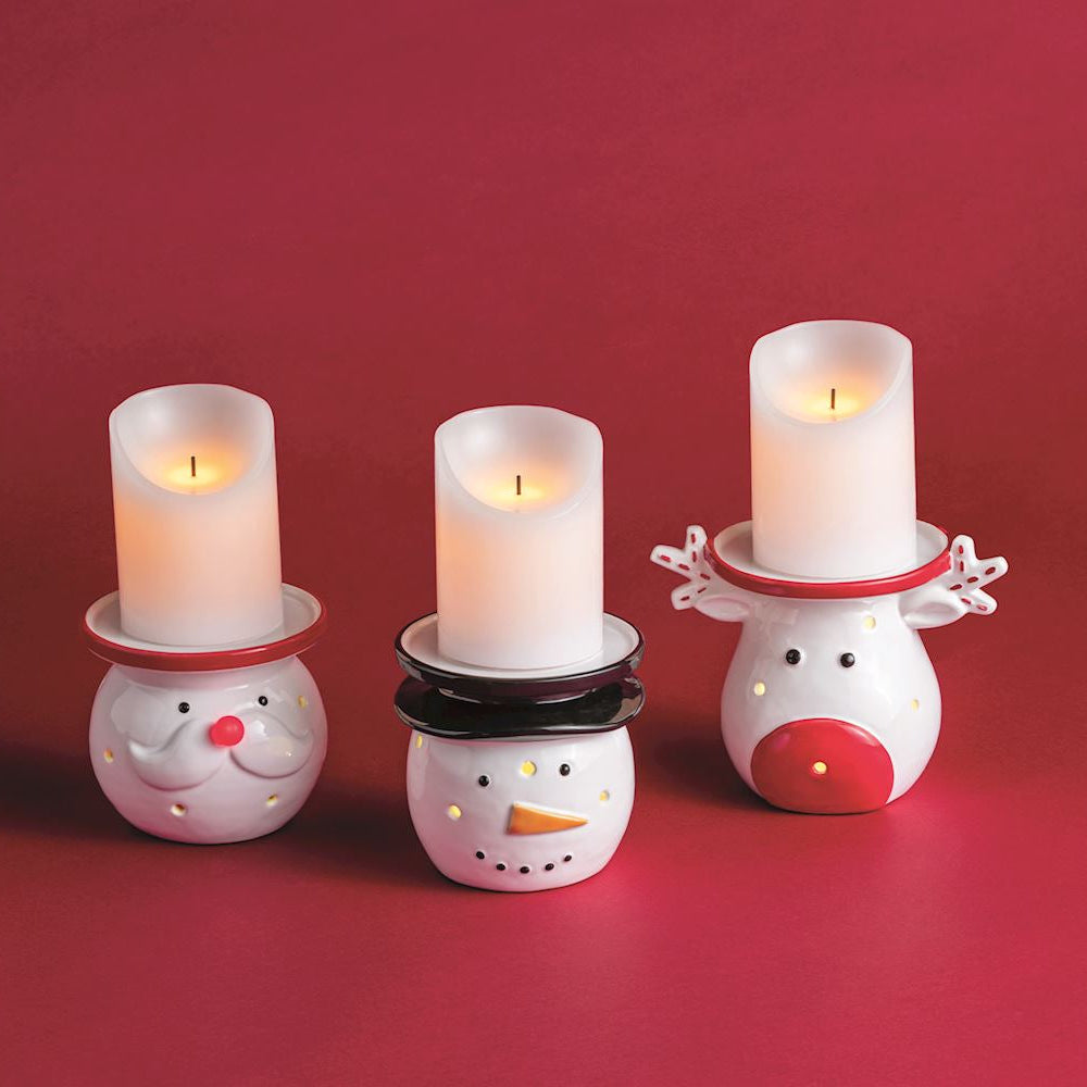 Add a festive glow to your holiday decor with this hand-painted LED Santa Pillar Holder. Made from durable dolomite, it features detailed craftsmanship and warm LED lighting. Compact and ready to use with included batteries, it’s perfect for tabletops, mantels, or as a centerpiece.