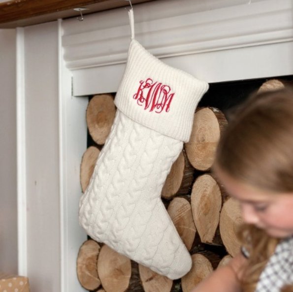 Deck the halls with monogrammed stockings! This Cable Knit Stocking will add the perfect personalized touch to your mantle this Christmas. Stocking is durable enough to hold some of Santa’s favorite stocking-stuffers and adds a cozy texture to your living room!