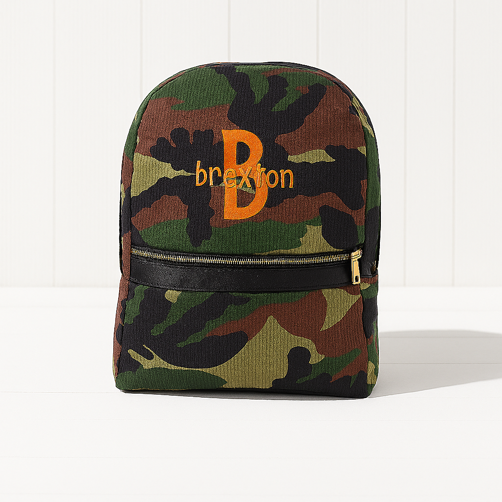 Monogrammed Camo Seersucker Medium Backpack